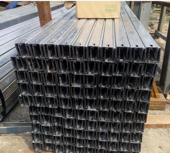 定型支架由主柱和托臂兩部分組成,主柱采用鋼膨脹螺栓固定在梁或頂板上,托臂掛固在立柱上面。立柱由角鋼加工而成,上面有成排的長方形孔,可以調整托壁的標高。