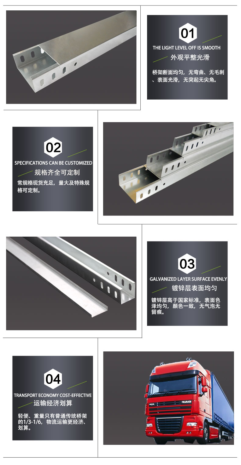 1.外觀平整光滑 橋架斷面均勻,無彎曲、無毛刺、表面光滑,無凸起無尖角。