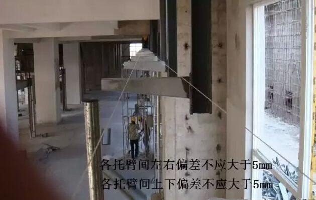 2、兩端托臂焊接完后,在兩端托臂上拉兩條水平線,用于確定中間托臂高度,拉線要拉緊防止中間下垂。